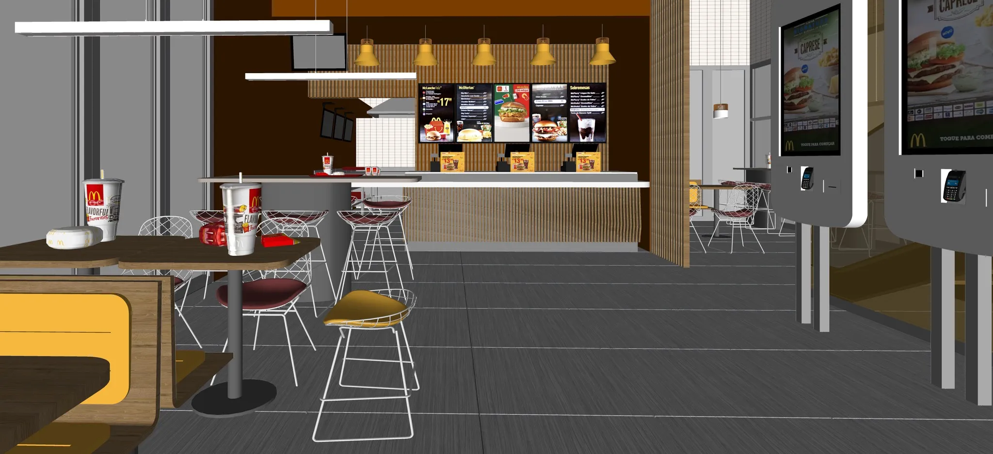 The entire study was conducted using actual measurements of all the brand's objects, furniture, and products as a basis, which I developed through research in real stores in São Paulo. The brand's book was also used as a basis for color selection and as a reference for the brand's graphic materials.